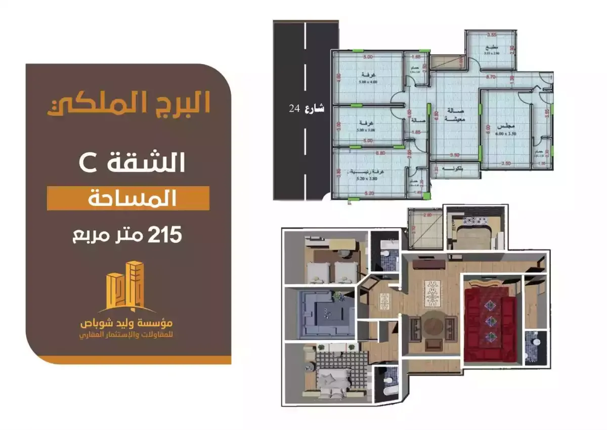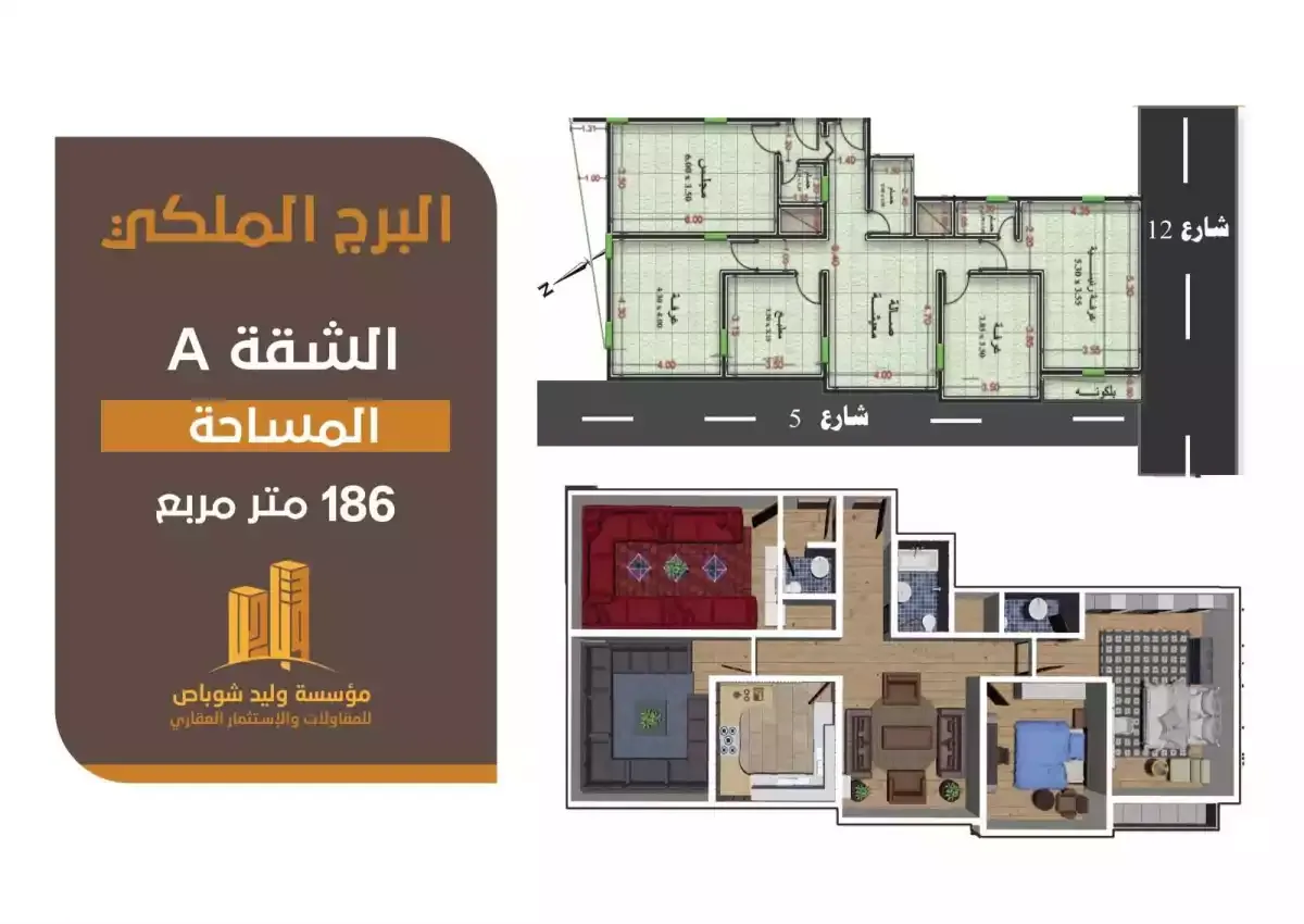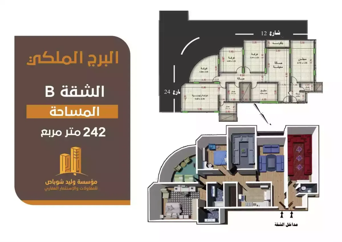 • ثلاثة شوارع 24 و 12 و 5 متر جنوبي غربي.